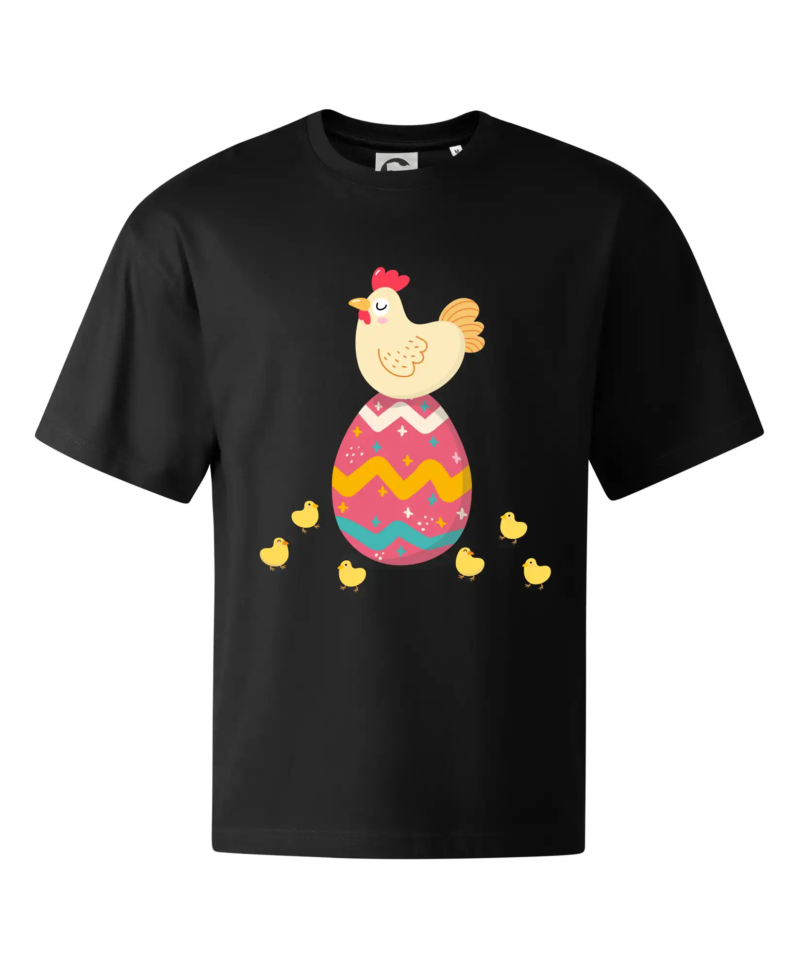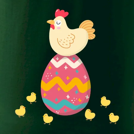 Slepice sedící na velikonočním vejci