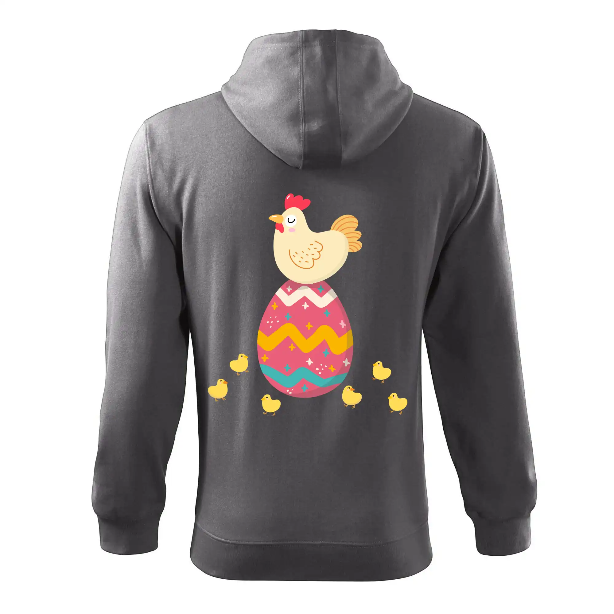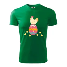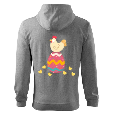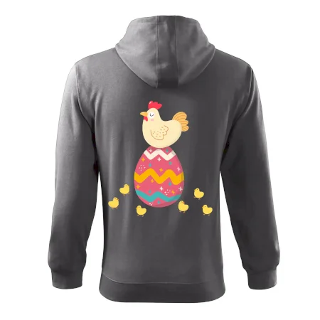 Slepice sedící na velikonočním vejci