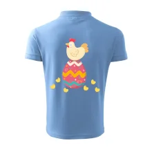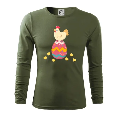 Slepice sedící na velikonočním vejci