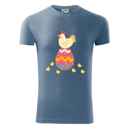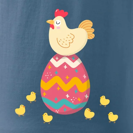 Slepice sedící na velikonočním vejci