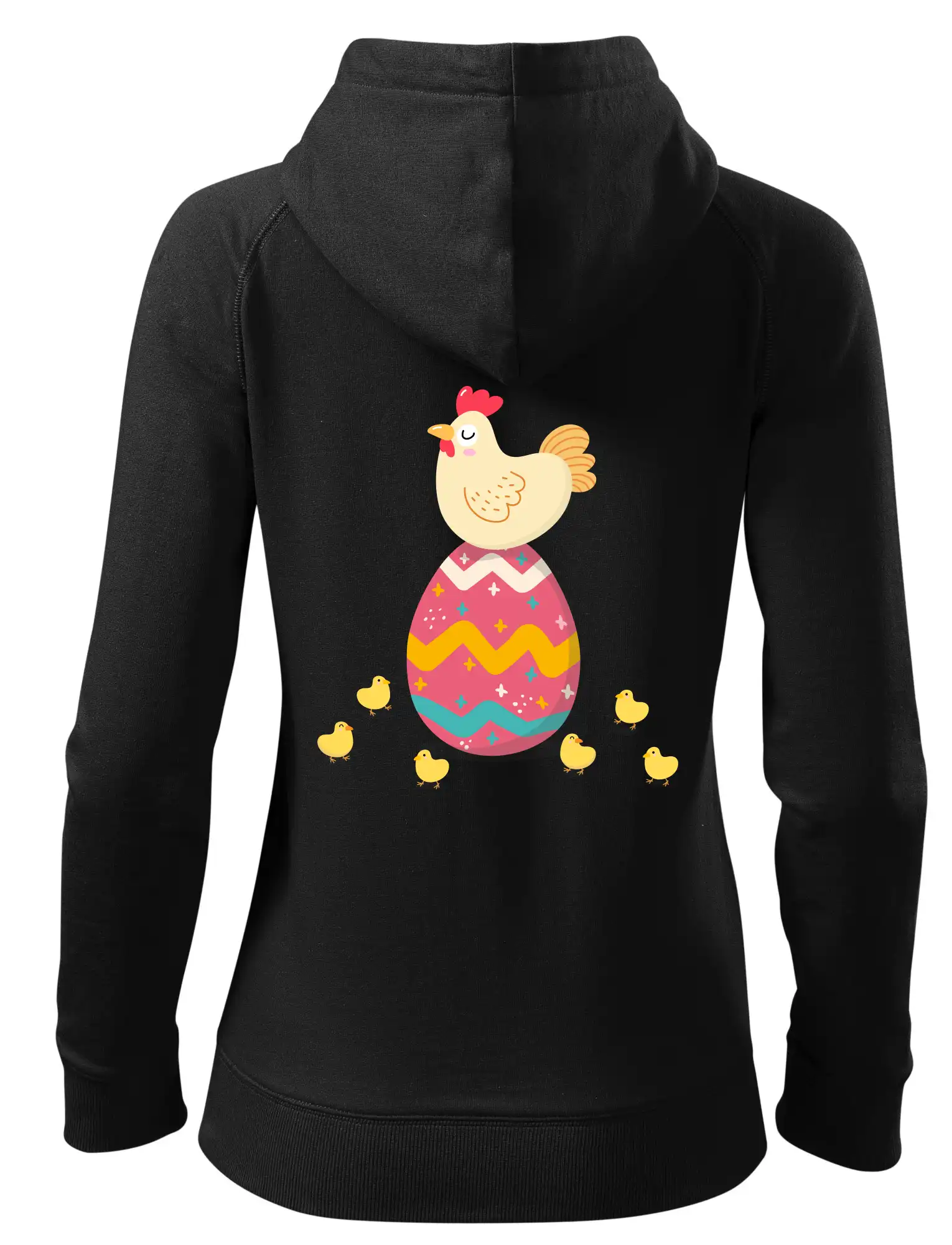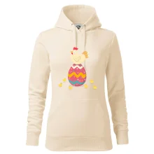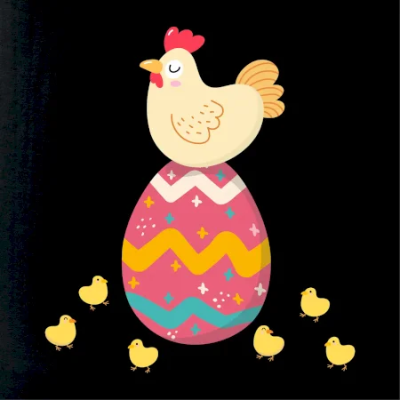 Slepice sedící na velikonočním vejci