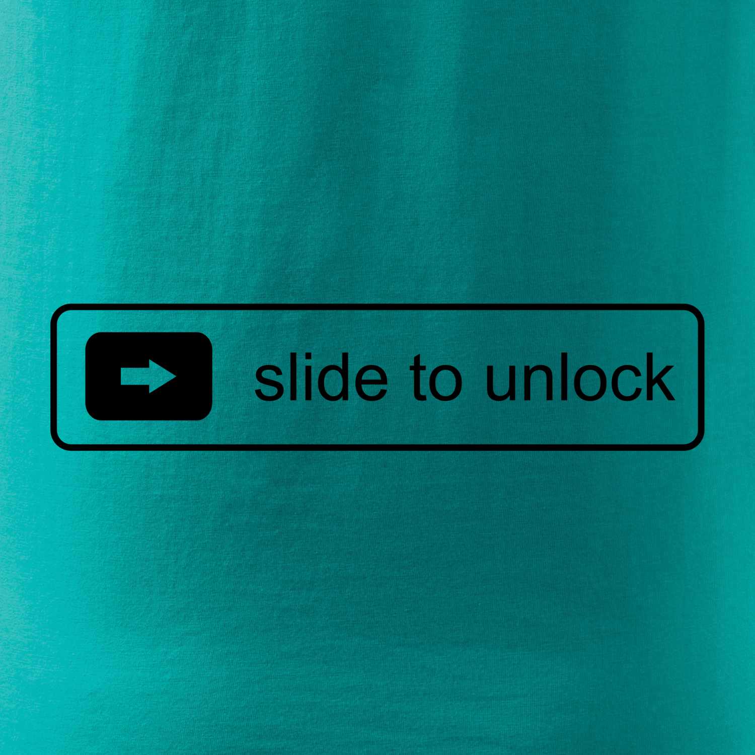 Vtipné tričko s nápisem "Slide to unlock". Pro odemčení přejeď! U mobilu je to jasné, ale co se odemkne, po přejetí po tričku?! Vyzkoušej to!