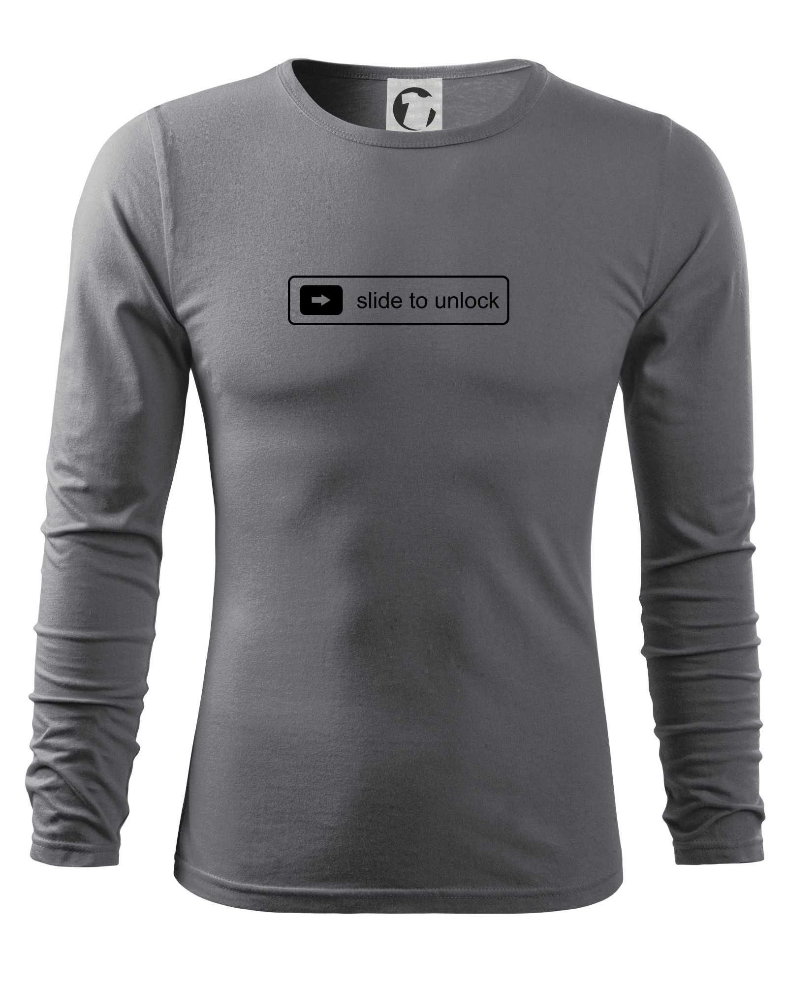 Vtipné tričko s nápisem "Slide to unlock". Pro odemčení přejeď! U mobilu je to jasné, ale co se odemkne, po přejetí po tričku?! Vyzkoušej to!