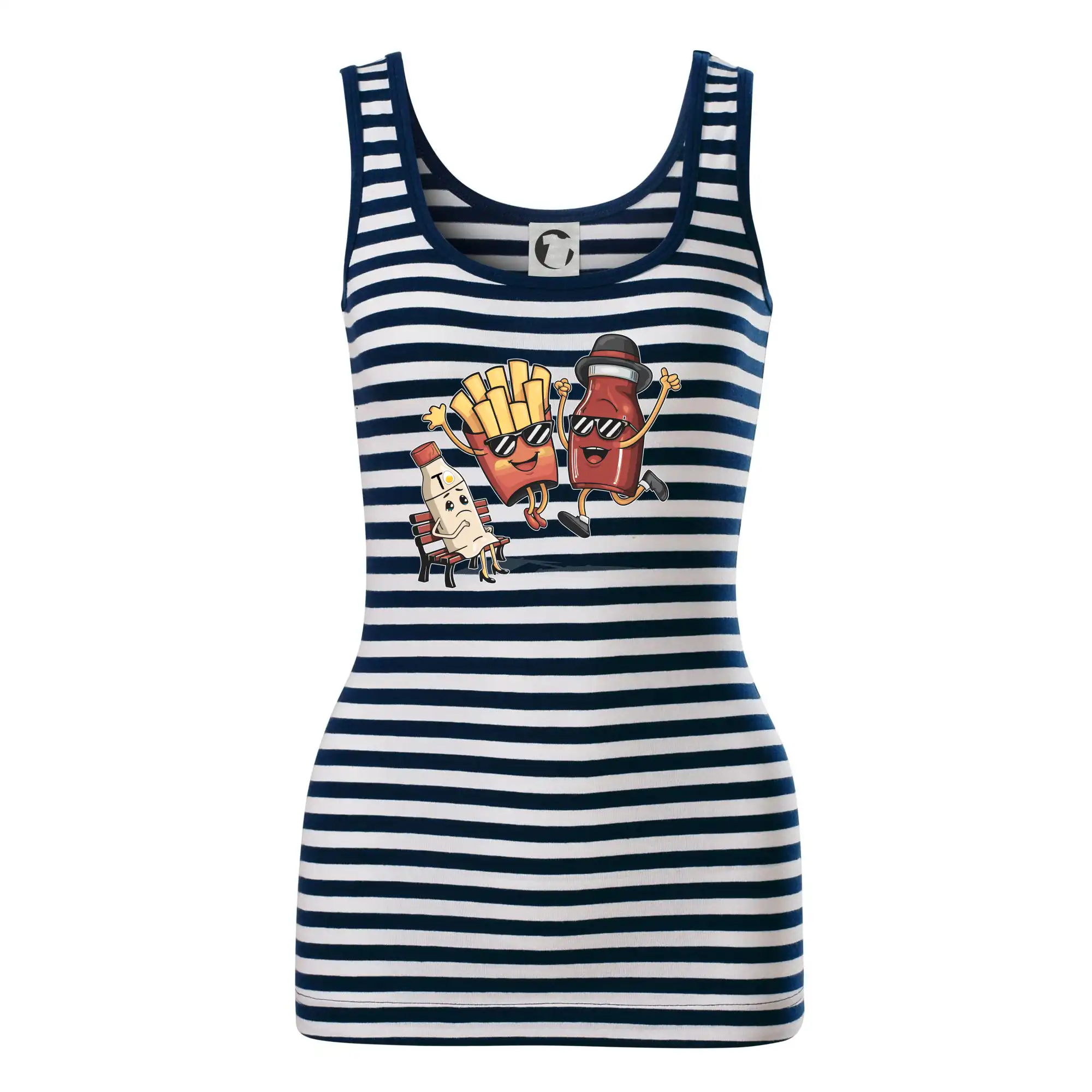 Dámské tílko MALFINI Sailor Top 806 přináší ikonický námořnický vzhled s bílo-modrými pruhy, ideální pro letní dny, výlety nebo ležérní outfity.