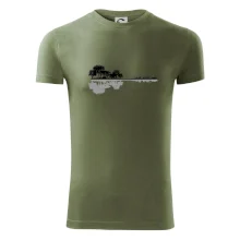 Pánské tričko s krátkým rukávem vyšší gramáže. Módní, přiléhavý střih s bočními švy. Úzký lem průkrčníku ze žebrového úpletu s přídavkem 5 % elastanu. Vnitřní část zadního průkrčníku začištěna páskou. Zpevněný ramenní šev.