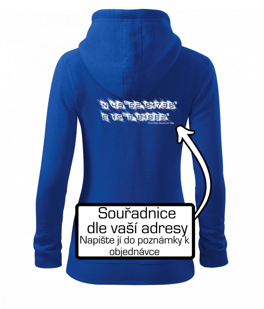 Přidejte dám do poznámky k objednávce Vaší adresu a třeba rok narození a my vytiskneme na triko souřadnice daného místa s malým nápisem, nebo bez něj.