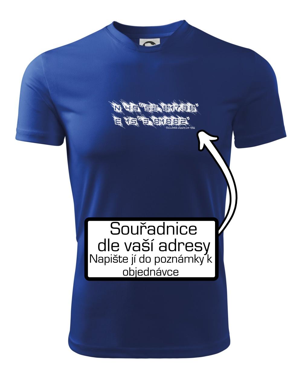 Přidejte dám do poznámky k objednávce Vaší adresu a třeba rok narození a my vytiskneme na triko souřadnice daného místa s malým nápisem, nebo bez něj.