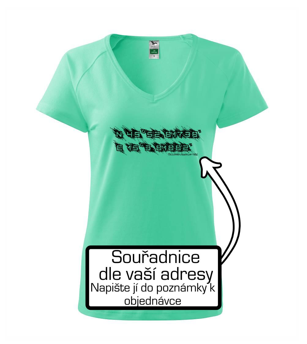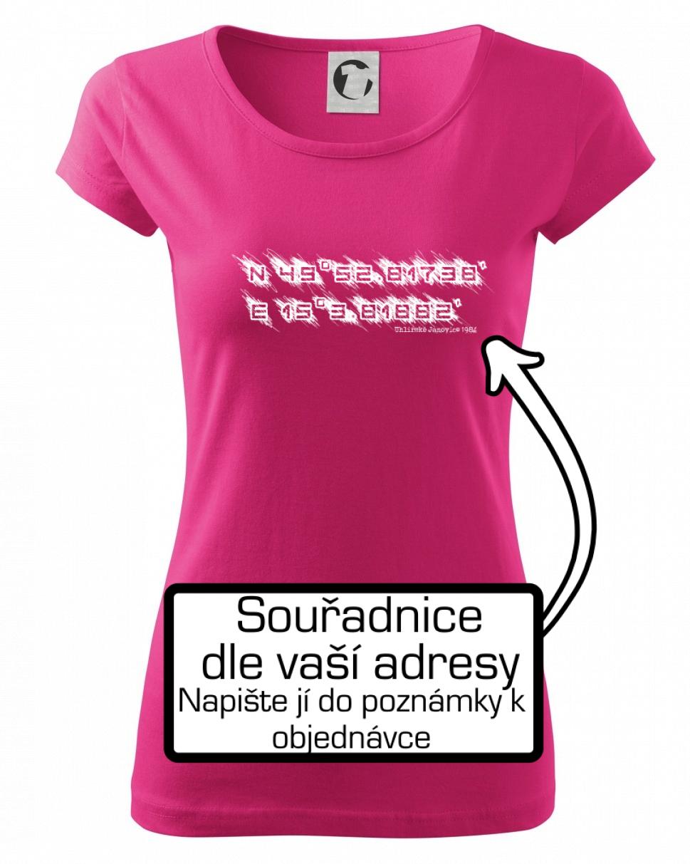 Přidejte dám do poznámky k objednávce Vaší adresu a třeba rok narození a my vytiskneme na triko souřadnice daného místa s malým nápisem, nebo bez něj.