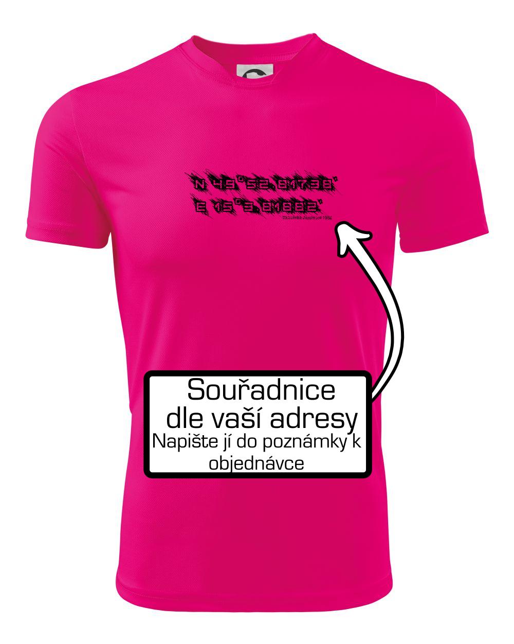 Přidejte dám do poznámky k objednávce Vaší adresu a třeba rok narození a my vytiskneme na triko souřadnice daného místa s malým nápisem, nebo bez něj.