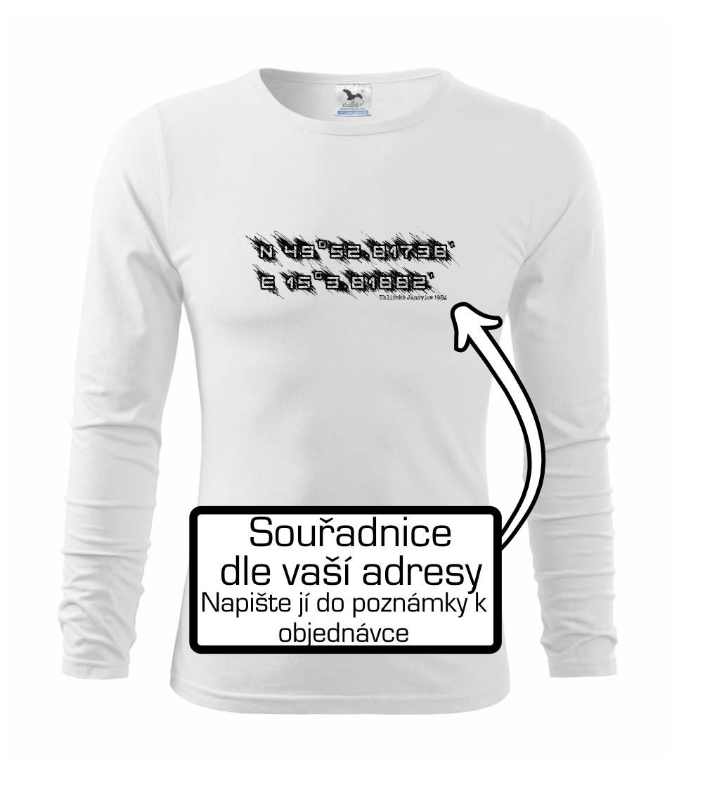 Přidejte dám do poznámky k objednávce Vaší adresu a třeba rok narození a my vytiskneme na triko souřadnice daného místa s malým nápisem, nebo bez něj.
