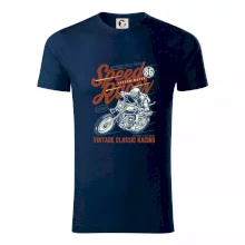 Pánské tričko s krátkým rukávem vyšší gramáže. Módní, přiléhavý střih s bočními švy. Úzký lem průkrčníku ze žebrového úpletu s přídavkem 5 % elastanu. Vnitřní část zadního průkrčníku začištěna páskou. Zpevněný ramenní šev.