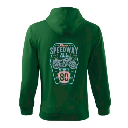 Pánská mikina MALFINI Trendy Zipper 410 je dokonalou kombinací moderního designu, funkčnosti a pohodlí, ideální pro každodenní nošení, práci nebo volný čas. Vyrobena z kvalitní směsi 65 % bavlny a 35 % polyesteru (u barvy 12: 85 % bavlna, 15 % viskóza) s gramáží 300 g/m² a počesanou vnitřní stranou typu Terry, která zajišťuje mimořádnou měkkost a teplo. Mikina má rovný střih s bočními švy, celopropínací kostěný zip a kapuci s podšívkou, kterou lze regulovat pomocí stahovací šňůrky. Vnitřní část průkrčníku je začištěna kontrastní páskou pro větší odolnost a estetiku. Praktické nakládané kapsy ve stylu „klokanky“ s ozdobným prošíváním a elastické lemy s 2:2 žebrovým úpletem obsahujícím 5 % elastanu zaručují perfektní přizpůsobení a pohodlí při pohybu. Vhodná pro potisk nebo výšivku, dostupná v široké škále barev a velikostí S-3XL.