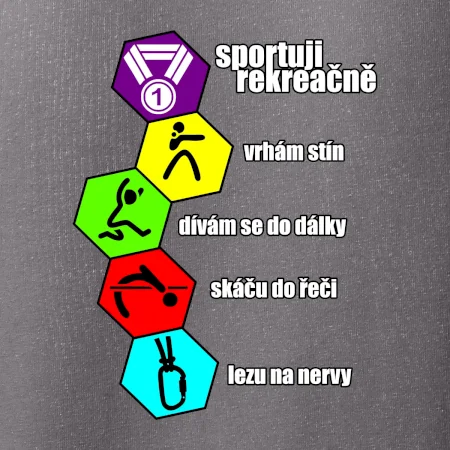 Hledáš nápis pro sportovní milovníky a domácí povaleče. Potom je tričko sportuju rekreačně to pravé pro tebe. Pro sportovce nesportovce.