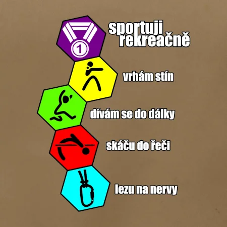 Hledáš nápis pro sportovní milovníky a domácí povaleče. Potom je tričko sportuju rekreačně to pravé pro tebe. Pro sportovce nesportovce.