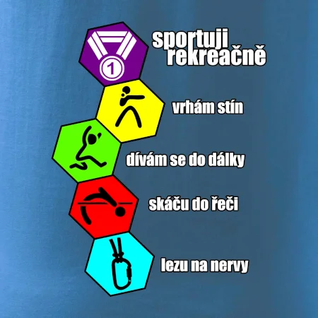 Hledáš nápis pro sportovní milovníky a domácí povaleče. Potom je tričko sportuju rekreačně to pravé pro tebe. Pro sportovce nesportovce.