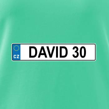 Narozeninové triko s motivem SPZ na auto. Triko pro oslavence Davida, který slaví jubileum 30 let. Dárek ke třicátinám. Narozeninová poznávačka s nápisem David 30. Triko s "espézetkou" k narozeninám. Oslav třicátiny tímhle narozeninovým trikem!