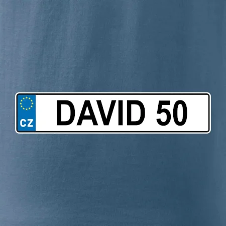 Narozeninové triko s motivem SPZ na auto. Triko pro oslavence Davida, který slaví jubileum 50 let. Dárek k padesátinám. Narozeninová poznávačka s nápisem David 50. Triko s "espézetkou" k narozeninám. Oslav padesátiny tímhle narozeninovým trikem!