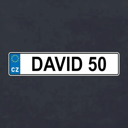 Narozeninové triko s motivem SPZ na auto. Triko pro oslavence Davida, který slaví jubileum 50 let. Dárek k padesátinám. Narozeninová poznávačka s nápisem David 50. Triko s "espézetkou" k narozeninám. Oslav padesátiny tímhle narozeninovým trikem!