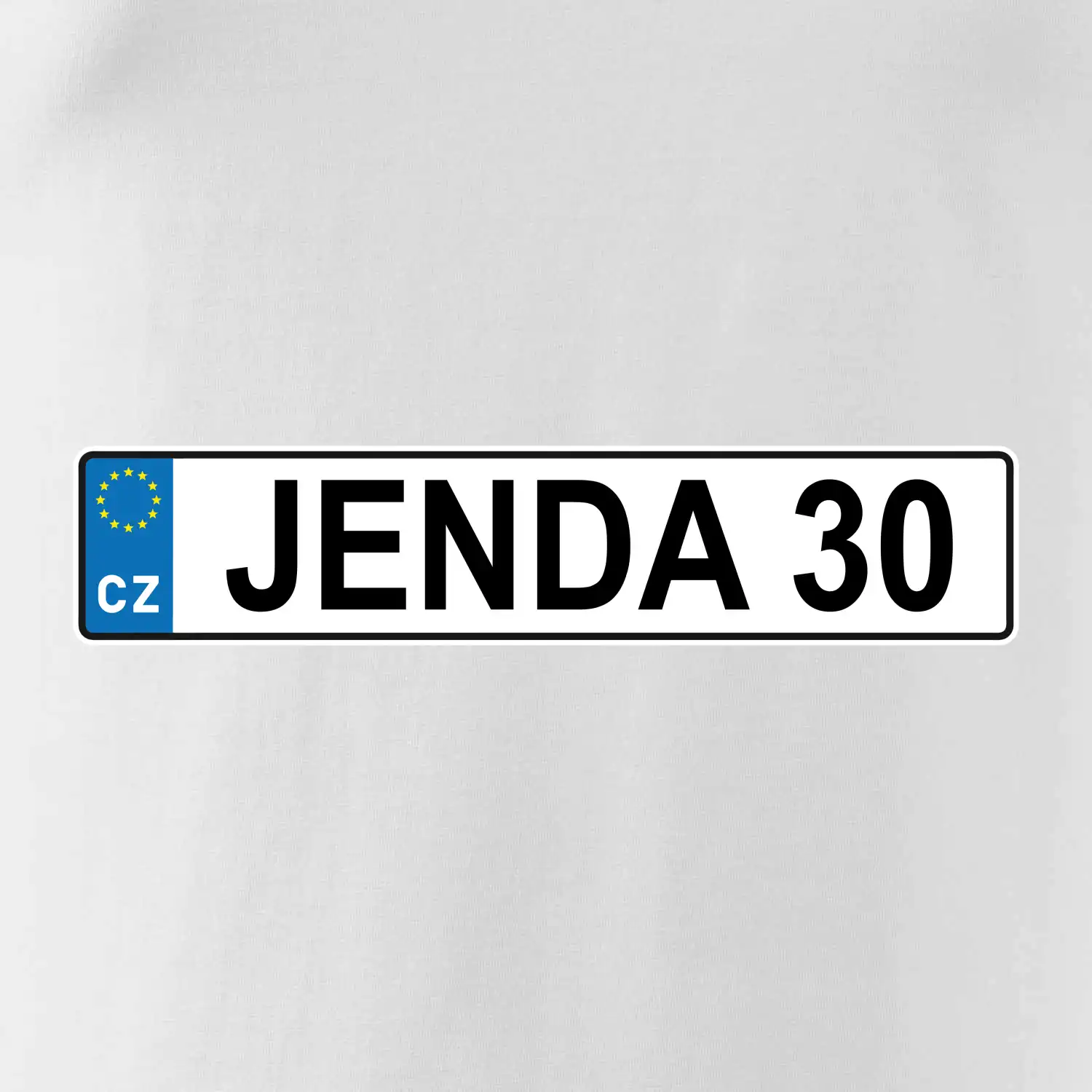 Narozeninové triko s motivem SPZ na auto. Triko pro oslavence Jendu, který slaví jubileum 30 let. Dárek ke třicátinám. Narozeninová poznávačka s nápisem Jenda 30. Triko s "espézetkou" k narozeninám. Oslav třicátiny tímhle trikem!