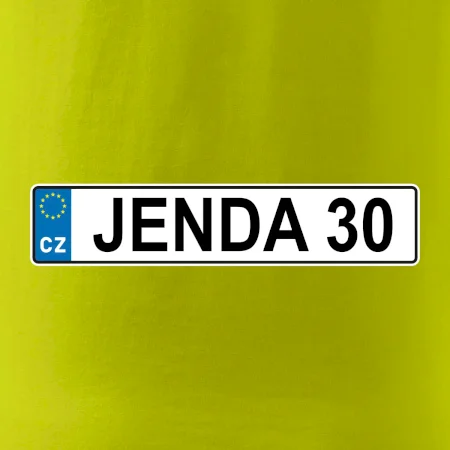 Narozeninové triko s motivem SPZ na auto. Triko pro oslavence Jendu, který slaví jubileum 30 let. Dárek ke třicátinám. Narozeninová poznávačka s nápisem Jenda 30. Triko s "espézetkou" k narozeninám. Oslav třicátiny tímhle trikem!