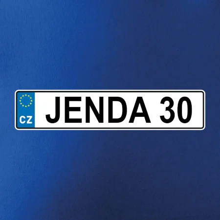 Narozeninové triko s motivem SPZ na auto. Triko pro oslavence Jendu, který slaví jubileum 30 let. Dárek ke třicátinám. Narozeninová poznávačka s nápisem Jenda 30. Triko s "espézetkou" k narozeninám. Oslav třicátiny tímhle trikem!