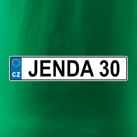 Narozeninové triko s motivem SPZ na auto. Triko pro oslavence Jendu, který slaví jubileum 30 let. Dárek ke třicátinám. Narozeninová poznávačka s nápisem Jenda 30. Triko s "espézetkou" k narozeninám. Oslav třicátiny tímhle trikem!