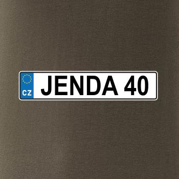 Narozeninové triko s motivem SPZ na auto. Triko pro oslavence Jendu, který slaví jubileum 40 let. Dárek ke čtyřicátinám. Narozeninová poznávačka s nápisem Jenda 40. Triko s "espézetkou" k narozeninám. Oslav čtyřicátiny tímhle trikem!