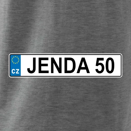 Narozeninové triko s motivem SPZ na auto. Triko pro oslavence Jendu, který slaví jubileum 50 let. Dárek k padesátinám. Narozeninová poznávačka s nápisem Jenda 50. Triko s "espézetkou" k narozeninám. Oslav padesátiny tímhle trikem!