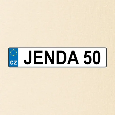 Narozeninové triko s motivem SPZ na auto. Triko pro oslavence Jendu, který slaví jubileum 50 let. Dárek k padesátinám. Narozeninová poznávačka s nápisem Jenda 50. Triko s "espézetkou" k narozeninám. Oslav padesátiny tímhle trikem!