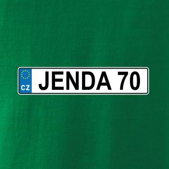 Narozeninové triko s motivem SPZ na auto. Triko pro oslavence Jendu, který slaví jubileum 70 let. Dárek k sedmdesátinám. Narozeninová poznávačka s nápisem Jenda 70. Triko s "espézetkou" k narozeninám. Oslav sedmdesátiny tímhle trikem!