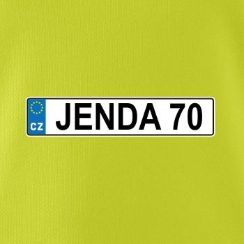 Narozeninové triko s motivem SPZ na auto. Triko pro oslavence Jendu, který slaví jubileum 70 let. Dárek k sedmdesátinám. Narozeninová poznávačka s nápisem Jenda 70. Triko s "espézetkou" k narozeninám. Oslav sedmdesátiny tímhle trikem!