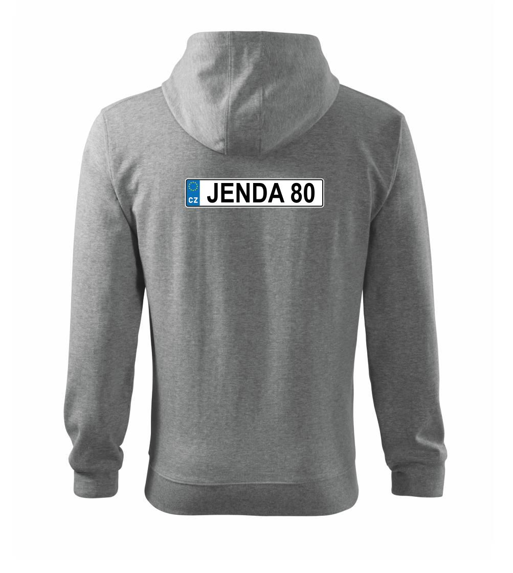 Narozeninové triko s motivem SPZ na auto. Triko pro oslavence Jendu, který slaví jubileum 80 let. Dárek k osmdesátinám. Narozeninová poznávačka s nápisem Jenda 80. Triko s "espézetkou" k narozeninám. Oslav osmdesátiny tímhle trikem!