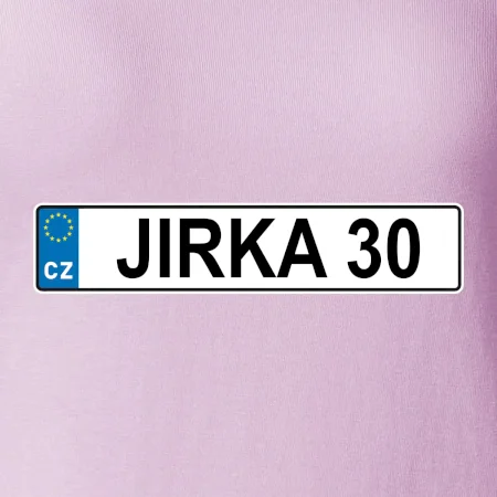 Narozeninové triko s motivem SPZ na auto. Triko pro oslavence Jirku, který slaví jubileum 30 let. Dárek ke třicátinám. Narozeninová poznávačka s nápisem Jirka 30. Triko s "espézetkou" k narozeninám. Oslav třicátiny s tímhle trikem!