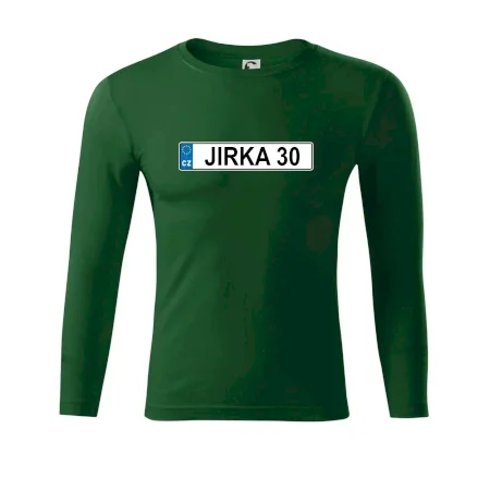 Narozeninové triko s motivem SPZ na auto. Triko pro oslavence Jirku, který slaví jubileum 30 let. Dárek ke třicátinám. Narozeninová poznávačka s nápisem Jirka 30. Triko s "espézetkou" k narozeninám. Oslav třicátiny s tímhle trikem!
