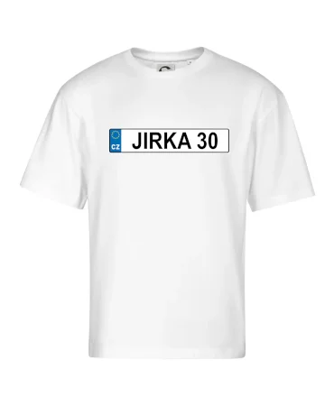 Narozeninové triko s motivem SPZ na auto. Triko pro oslavence Jirku, který slaví jubileum 30 let. Dárek ke třicátinám. Narozeninová poznávačka s nápisem Jirka 30. Triko s "espézetkou" k narozeninám. Oslav třicátiny s tímhle trikem!