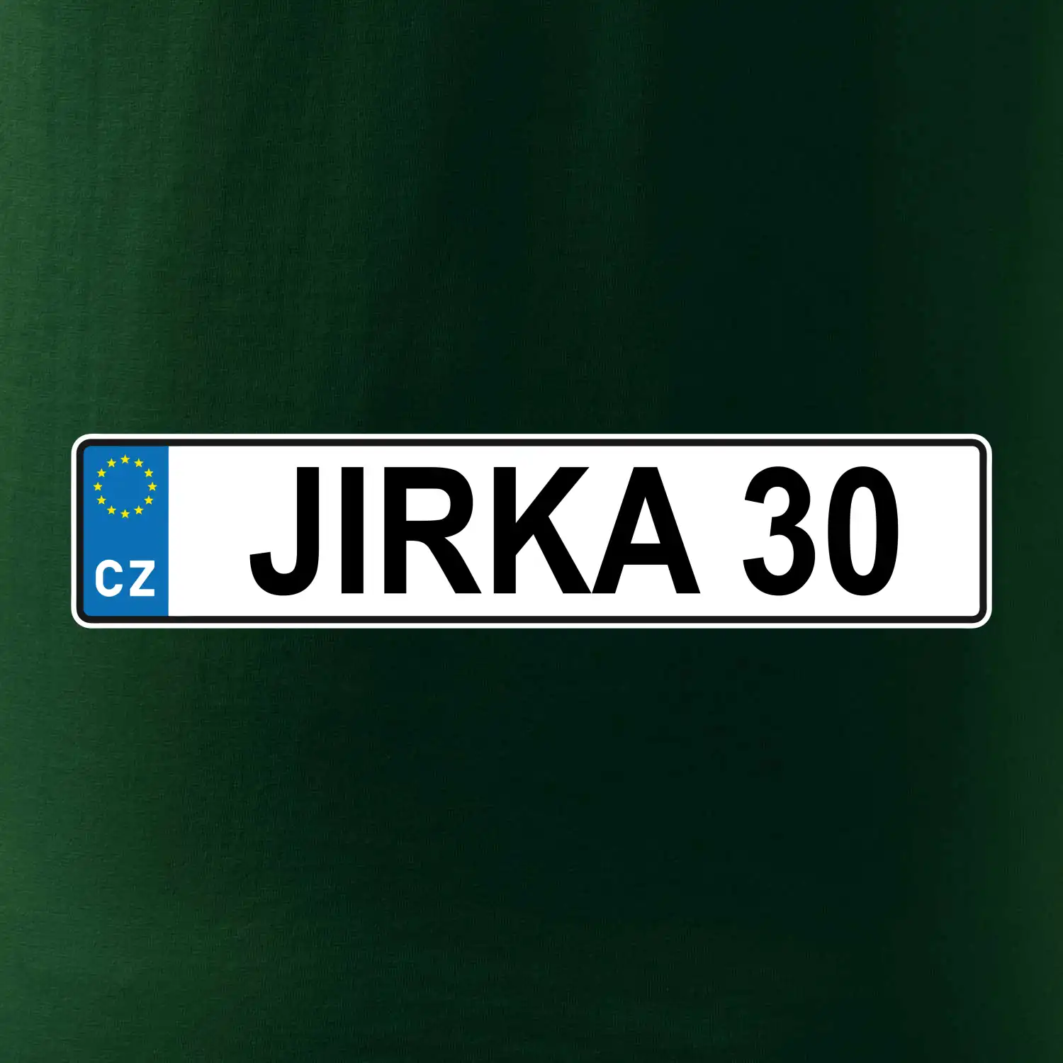 Narozeninové triko s motivem SPZ na auto. Triko pro oslavence Jirku, který slaví jubileum 30 let. Dárek ke třicátinám. Narozeninová poznávačka s nápisem Jirka 30. Triko s "espézetkou" k narozeninám. Oslav třicátiny s tímhle trikem!