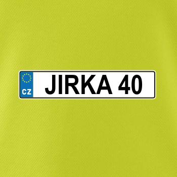 Narozeninové triko s motivem SPZ na auto. Triko pro oslavence Jirku, který slaví jubileum 40 let. Dárek ke čtyřicátinám. Narozeninová poznávačka s nápisem Jirka 40. Triko s "espézetkou" k narozeninám. Oslav čtyřicátiny s tímhle trikem!
