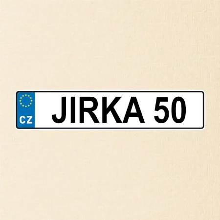 Narozeninové triko s motivem SPZ na auto. Triko pro oslavence Jirku, který slaví jubileum 50 let. Dárek k padesátinám. Narozeninová poznávačka s nápisem Jirka 50. Triko s "espézetkou" k narozeninám. Oslav padesátiny s tímhle trikem!