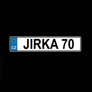 Narozeninové triko s motivem SPZ na auto. Triko pro oslavence Jirku, který slaví jubileum 70 let. Dárek k sedmdesátinám. Narozeninová poznávačka s nápisem Jirka 70. Triko s "espézetkou" k narozeninám. Oslav sedmdesátiny s tímhle trikem!