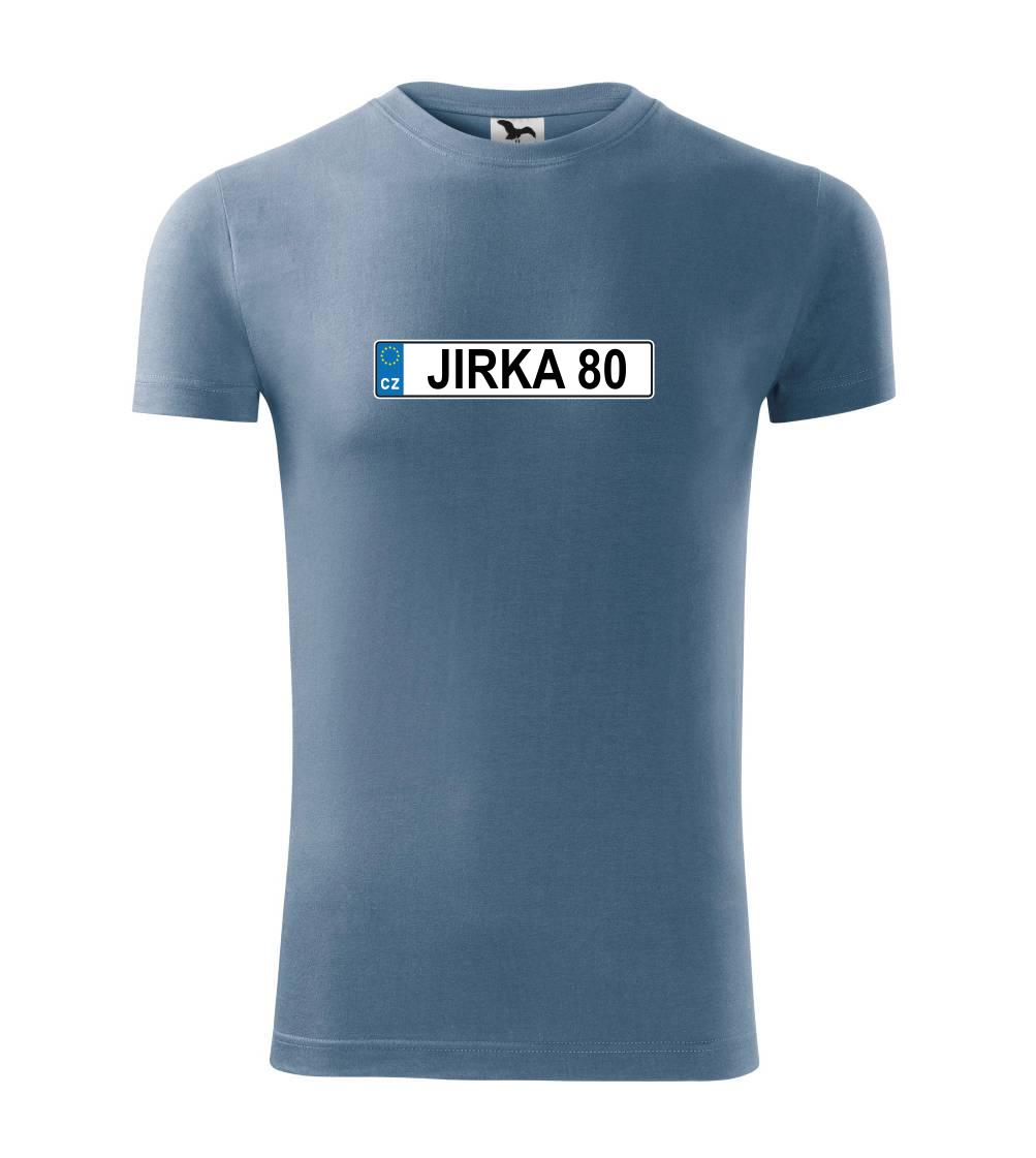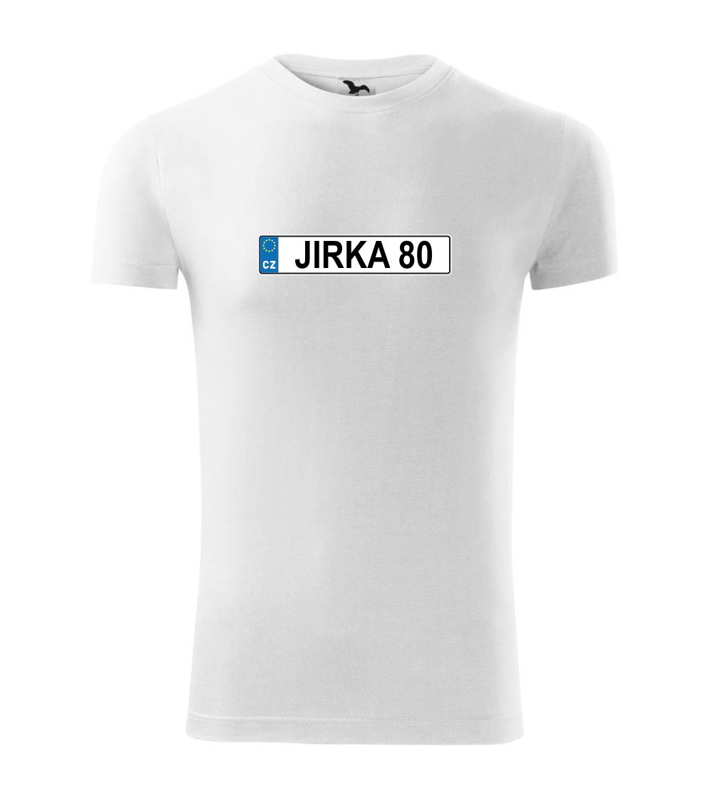 Narozeninové triko s motivem SPZ na auto. Triko pro oslavence Jirku, který slaví jubileum 80 let. Dárek k osmdesátinám. Narozeninová poznávačka s nápisem Jirka 80. Triko s "espézetkou" k narozeninám. Oslav osmdesátiny s tímhle trikem!