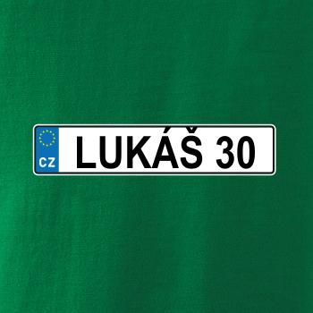 Narozeninové triko s motivem SPZ na auto. Triko pro oslavence Lukáše, který slaví jubileum 30 let. Dárek ke třicátinám. Narozeninová poznávačka s nápisem Lukáš 30. Triko s "espézetkou" k narozeninám. Oslav třicátiny tímhle narozeninovým trikem!