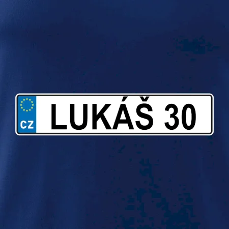Narozeninové triko s motivem SPZ na auto. Triko pro oslavence Lukáše, který slaví jubileum 30 let. Dárek ke třicátinám. Narozeninová poznávačka s nápisem Lukáš 30. Triko s "espézetkou" k narozeninám. Oslav třicátiny tímhle narozeninovým trikem!
