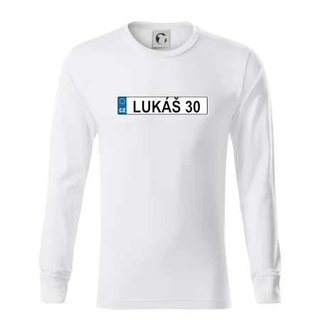 Narozeninové triko s motivem SPZ na auto. Triko pro oslavence Lukáše, který slaví jubileum 30 let. Dárek ke třicátinám. Narozeninová poznávačka s nápisem Lukáš 30. Triko s "espézetkou" k narozeninám. Oslav třicátiny tímhle narozeninovým trikem!