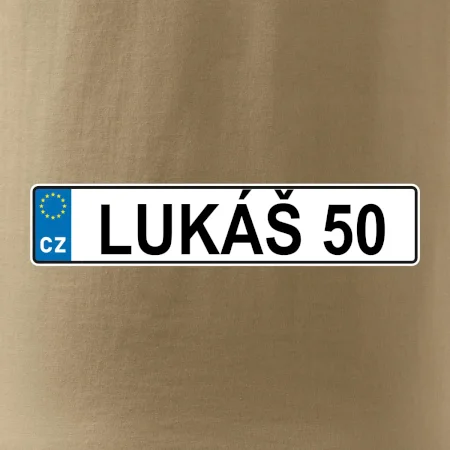 Narozeninové triko s motivem SPZ na auto. Triko pro oslavence Lukáše, který slaví jubileum 50 let. Dárek k padesátinám. Narozeninová poznávačka s nápisem Lukáš 50. Triko s "espézetkou" k narozeninám. Oslav padesátiny tímhle narozeninovým trikem!