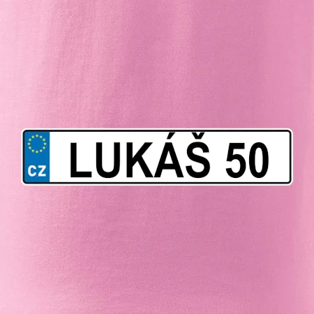 Narozeninové triko s motivem SPZ na auto. Triko pro oslavence Lukáše, který slaví jubileum 50 let. Dárek k padesátinám. Narozeninová poznávačka s nápisem Lukáš 50. Triko s "espézetkou" k narozeninám. Oslav padesátiny tímhle narozeninovým trikem!