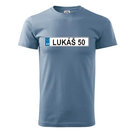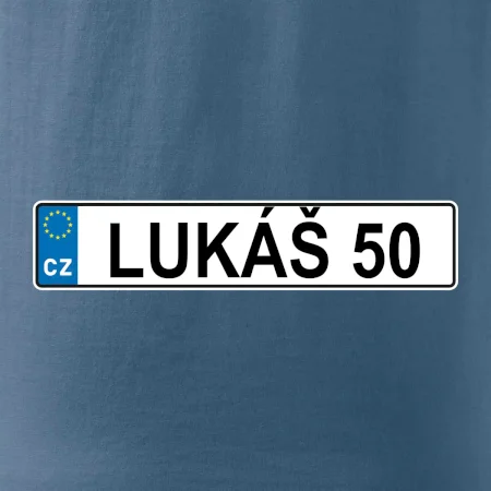 Narozeninové triko s motivem SPZ na auto. Triko pro oslavence Lukáše, který slaví jubileum 50 let. Dárek k padesátinám. Narozeninová poznávačka s nápisem Lukáš 50. Triko s "espézetkou" k narozeninám. Oslav padesátiny tímhle narozeninovým trikem!