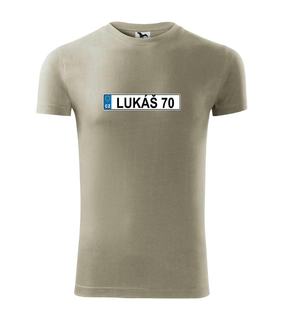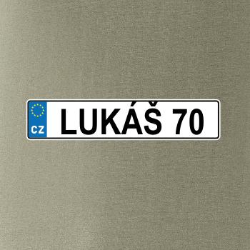 Narozeninové triko s motivem SPZ na auto. Triko pro oslavence Lukáše, který slaví jubileum 70 let. Dárek k sedmdesátinám. Narozeninová poznávačka s nápisem Lukáš 70. Triko s "espézetkou" k narozeninám. Oslav sedmdesátiny tímhle narozeninovým trikem!