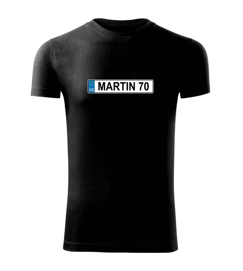 Narozeninové triko s motivem SPZ na auto. Triko pro oslavence Martina, který slaví jubileum 70 let. Dárek k sedmdesátinám. Narozeninová poznávačka s nápisem Martin 70. Triko s "espézetkou" k narozeninám. Oslav sedmdesátiny s tímhle trikem!