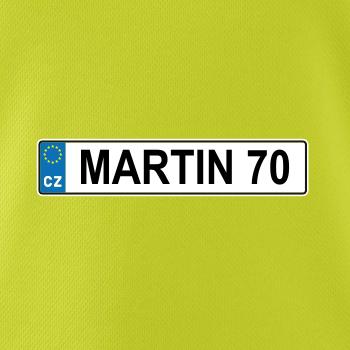 Narozeninové triko s motivem SPZ na auto. Triko pro oslavence Martina, který slaví jubileum 70 let. Dárek k sedmdesátinám. Narozeninová poznávačka s nápisem Martin 70. Triko s "espézetkou" k narozeninám. Oslav sedmdesátiny s tímhle trikem!