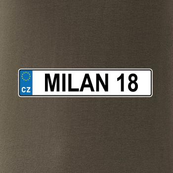 Narozeninové triko s motivem SPZ na auto. Triko pro oslavence Milana, který slaví jubileum 18 let. Dárek ke osmnáctinám. Narozeninová poznávačka s nápisem Milan 18. Triko s "espézetkou" k narozeninám. Oslav osmnáctiny - plnoletost s tímhle narozeninovým tričkem!